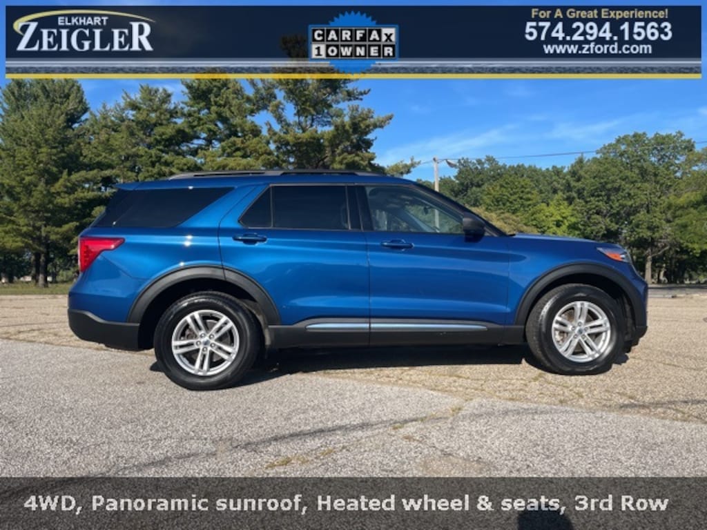 Stone Blue Metallic 2022 Ford Explorer XLT LEATHER, PANORAMIC VISTA ROOF, PUSH BUTTON START, REAR VIEW CAMERA, REMOTE START, SYNC, ONE OWNER, NON-SMOKER, 7 PASSENGER, 4X4, 4D Sport Utility, 4WD.