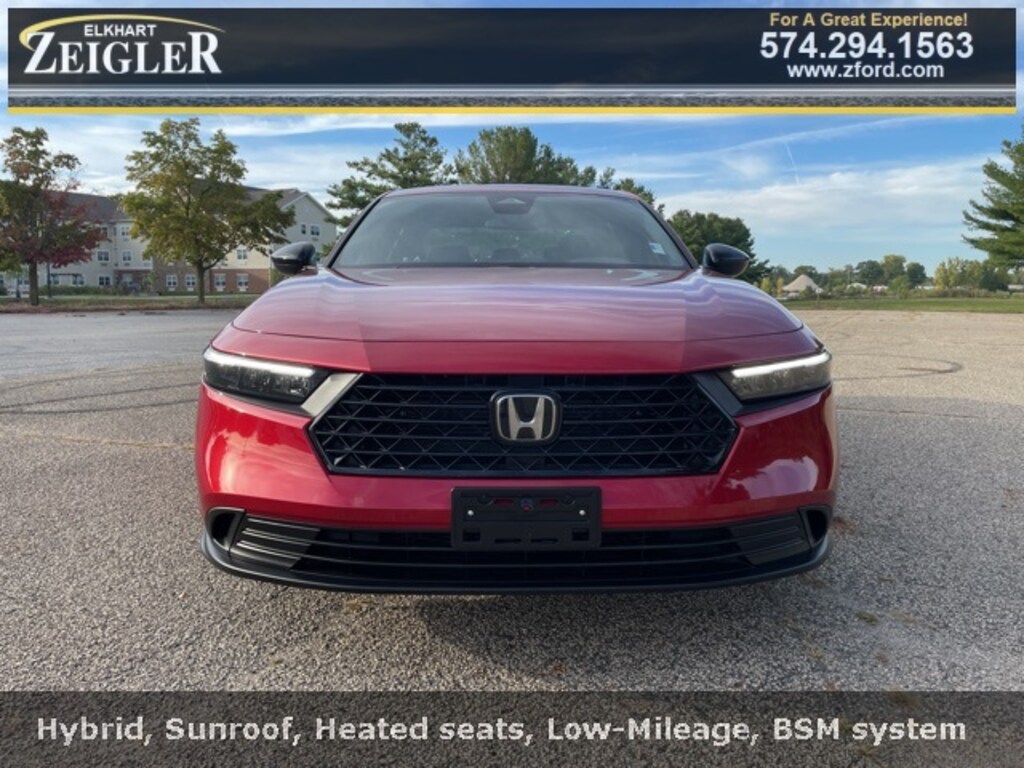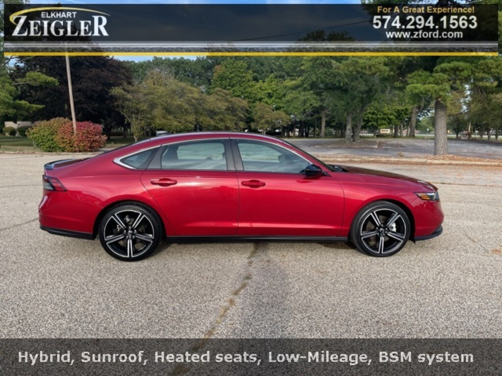 Red 2024 Honda Accord Hybrid Sport MOONROOF, NAVIGATION, PUSH BUTTON START, REAR VIEW CAMERA, Accord Hybrid Sport, 2.0L 16V DOHC, Red, Blind Spot Information (BSI) System warning.