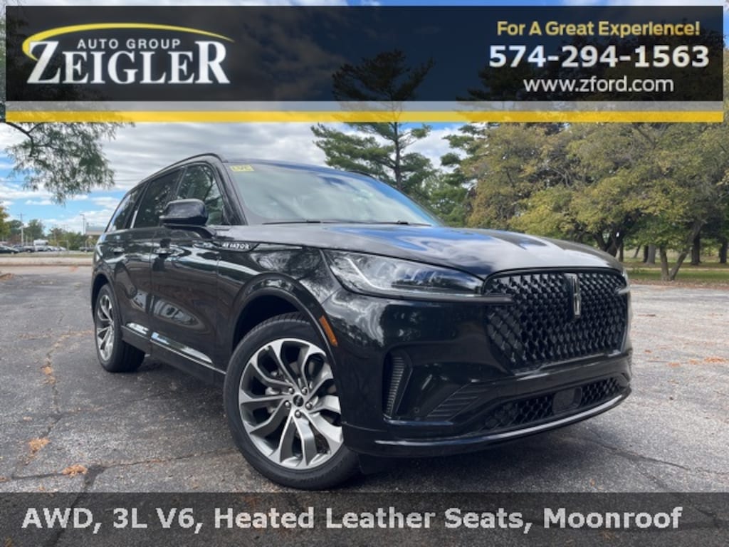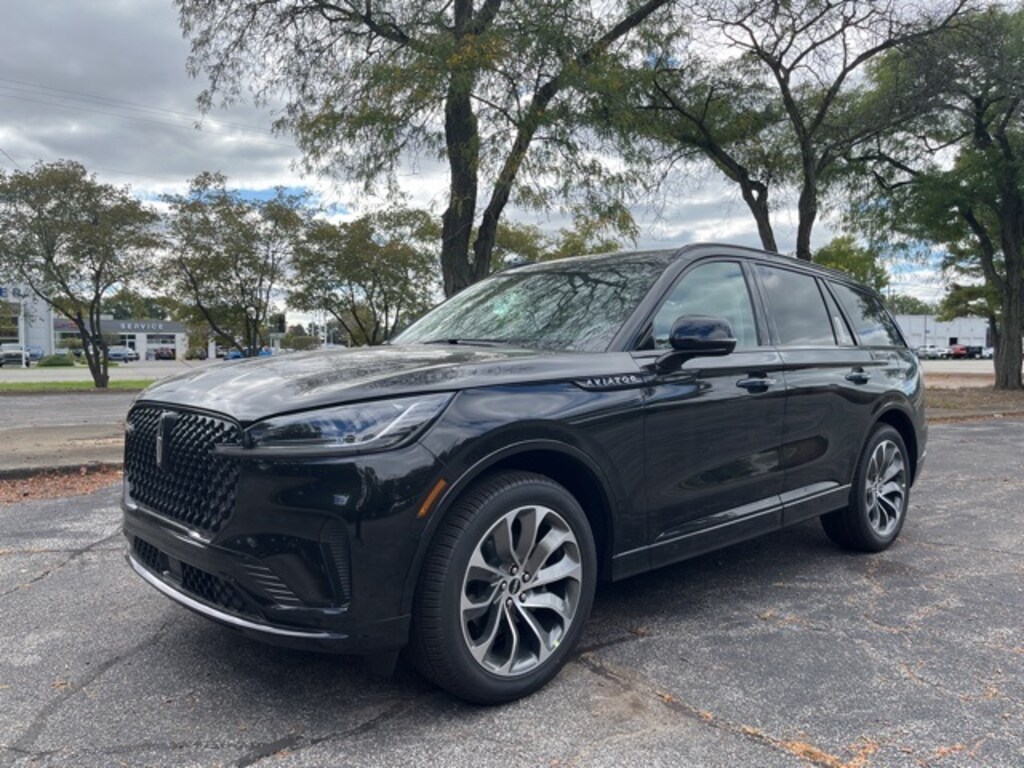 Infinite Black Metallic Clearcoat 2025 Lincoln Aviator Premiere LEATHER, MOONROOF, PUSH BUTTON START, REAR VIEW CAMERA, REVERSE SENSING SYSTEM, HEATED SEATS, BLUETOOTH, AWD, Advanced Heads-Up Display, Auto Air Refresh, Black Exterior Elements, Body-Color Exterior Elements, Equipment Group 101A, Heated 2nd Row Seats, Jet Appearance Package, Lincoln BlueCruise Equipped (4-Years Included), Navigation system: Connected Navigation (1-year trial), Radio: Revel Audio System w/14 Speakers, Wheels: 21" Bright-Machined Aluminum, Wireless Charging.