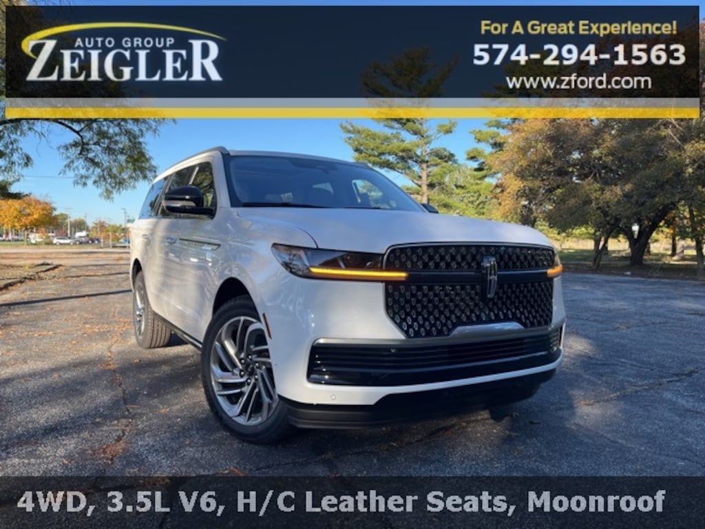 Pristine White Metallic Tri-Coat 2025 Lincoln Navigator Reserve LEATHER, MOONROOF, NAVIGATION, REAR VIEW CAMERA, REVERSE SENSING SYSTEM, SYNC, HEATED SEATS, BLUETOOTH, 4X4, 4WD, Gray Leather, 26mm Engine Radiator, Equipment Group 202A Reserve II, Heavy-Duty Trailer Tow Package, Navigation system: Connected Navigation (1-year trial), Trailer Brake Controller.