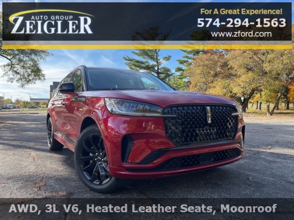 Red Carpet Tinted Clearcoat 2026 Lincoln Aviator Premiere LEATHER, NAVIGATION, PUSH BUTTON START, REAR VIEW CAMERA, REVERSE SENSING SYSTEM, SYNC, HEATED SEATS, BLUETOOTH, AWD, Advanced Heads-Up Display, Auto Air Refresh, Auto Heated & Ventilated Driver & Passenger Seats, Black Exterior Elements, Body-Color Exterior Elements, Equipment Group 102A, Heated 2nd Row Seats, Jet Appearance Package, Lincoln BlueCruise Equipped (4-Years Included), Lincoln Connectivity Package (4-years included), Navigation System, Panoramic Vista Roof w/Power Shade, Power Tilt & Telescoping Steering Column w/Memory, Radio: Revel Audio System w/14 Speakers, Wheels: 21" Bright-Machined Aluminum, Wireless Charging.