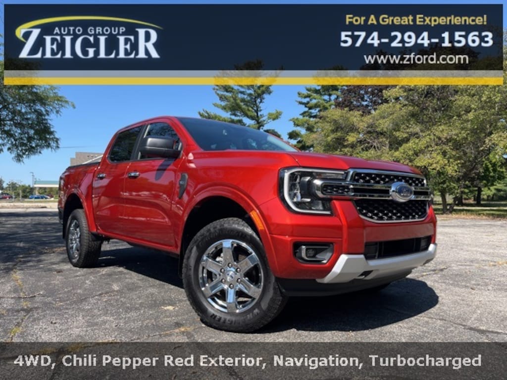 Chili Pepper Red 2024 Ford Ranger XLT Ranger XLT, 4WD, Chili Pepper Red, 12" Display in Center Stack, Chrome Appearance Package, Chrome Center Bar & Grille Surround, Chrome Door Handles, Chrome Exhaust Tip, Chrome Fog Lamp Bezel, Chrome Rear Bumper, Chrome Tow Hooks, Dual-Zone Electronic Climate Control (DEATC), Equipment Group 301A High, Gray Painted Center Bar & Grille Surround, Gray Painted Front Fascia & Rear Bumper, Gray Painted Wheel Lip Molding, Painted Body-Color Wheel Lip Molding, Power-Sliding Rear Window, Premium Cloth Front Heated Bucket Seats, Sport Appearance Package, Sport Box Decal, Wheels: 18" Chrome-Like PVD.